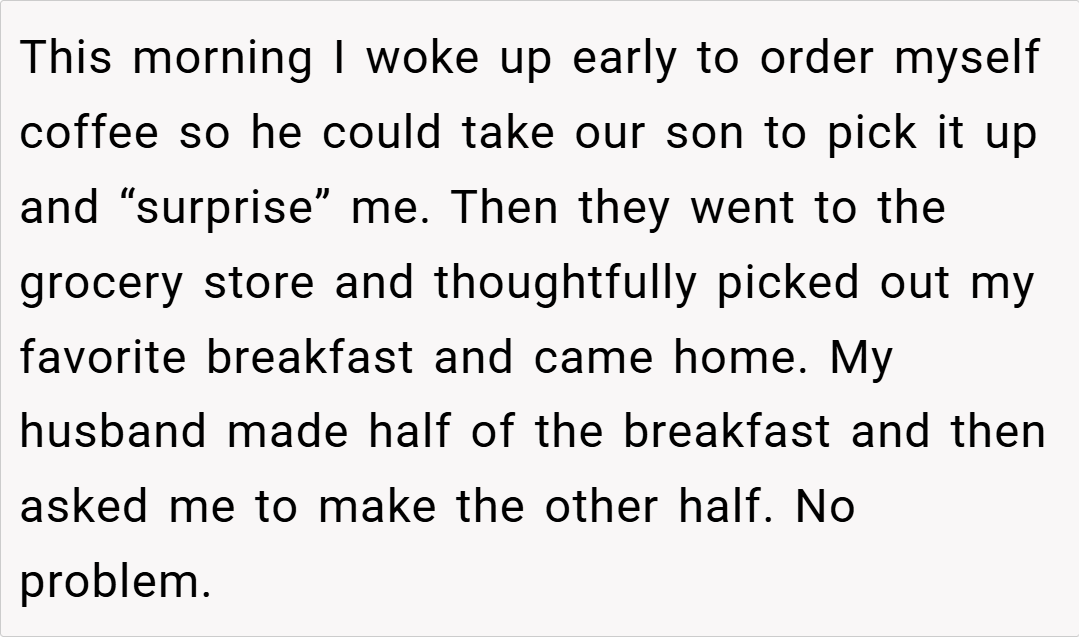 In every relationship, there are days that highlight the imbalance in daily responsibilities. Today’s story comes from a 31-year-old woman who found herself doing almost everything on what was meant to be a celebratory Father’s Day for her husband. Despite small gestures—ordering her coffee, preparing a favorite breakfast,