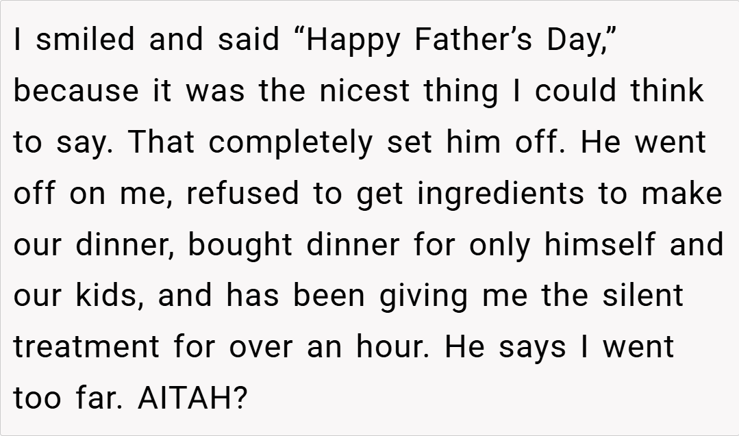 ‘AITAH for telling my husband Happy Father’s Day today because it felt like I was doing it all alone today?’