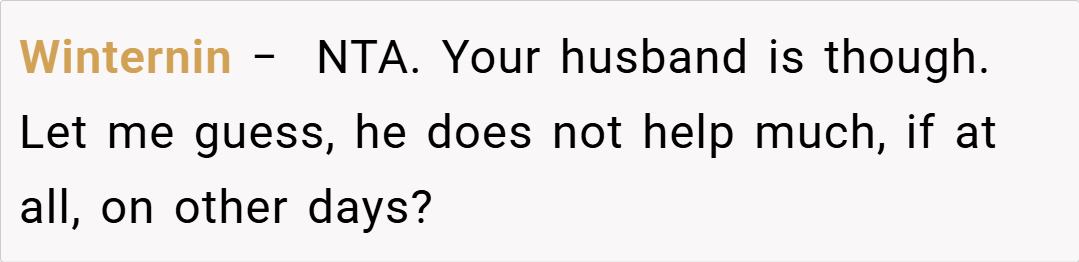 The online community is divided on such expressions of frustration. In one comment , several users empathized with your situation, applauding you for speaking up about the unequal division of labor. One user commented, “I’ve felt that loneliness and overload too—sometimes, a little sarcasm is all you have left to say when you’re exhausted.”