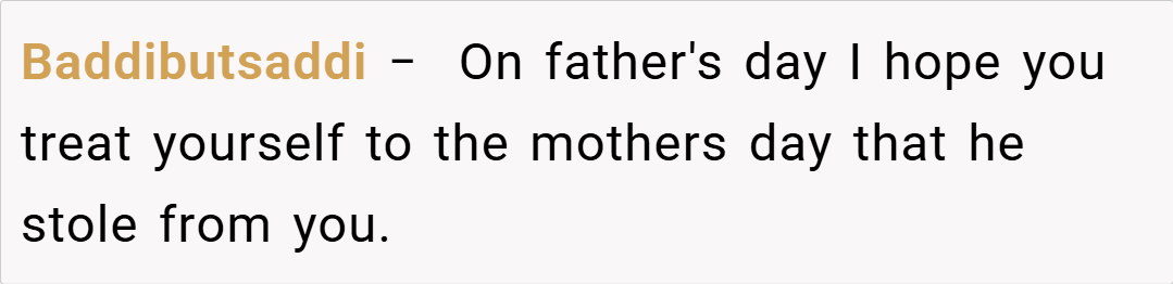 and even handling multiple household chores—she felt utterly alone in the effort to keep the day special. Her sarcastic “Happy Father’s Day” was not a callous remark but an emotional release born from the constant burden of managing tasks on her own while her husband repeatedly deflected responsibility.