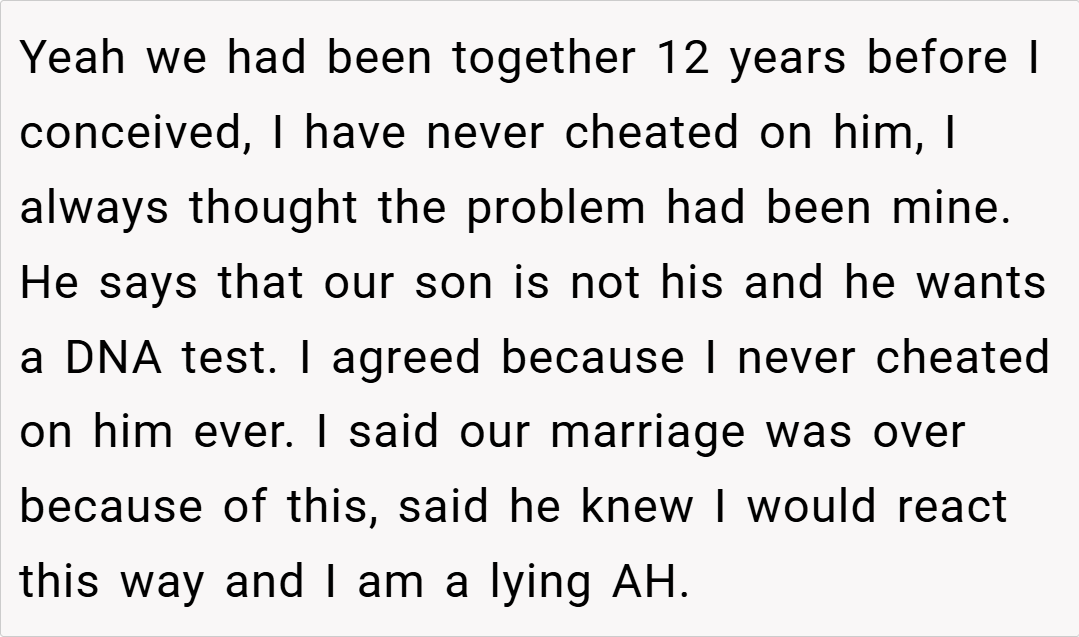 ‘AITAH for telling my husband that our marriage is over because he asked for a paternity test?’
