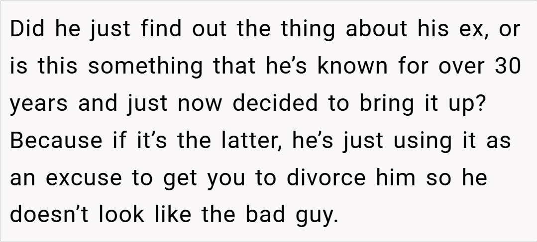 Ultimately, your decision to end the marriage because of the demand for a paternity test and the accompanying revelations is a profoundly personal one. While it’s a difficult choice to make after 30 years together, the breach of trust and the shock of learning about his hidden past are wounds that may be too deep to heal.