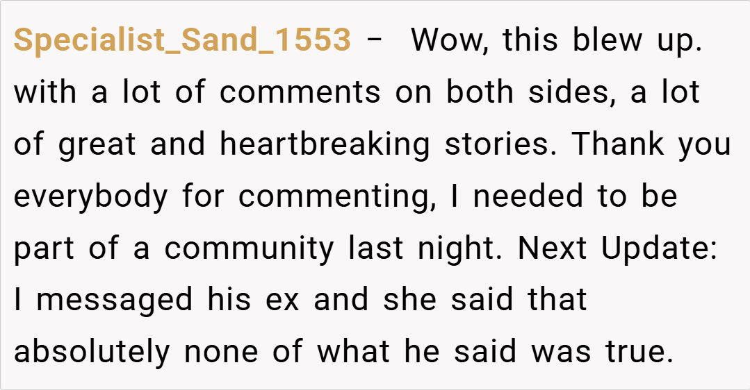 Another group shared personal stories of shattered trust, commenting, “I’ve been in relationships where hidden secrets came to light, and it left scars that never healed. Your reaction, though extreme, is completely understandable given the circumstances.”