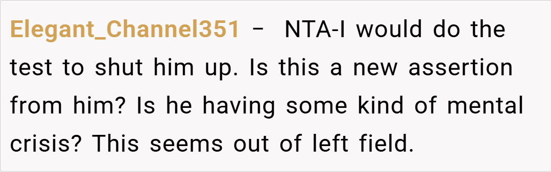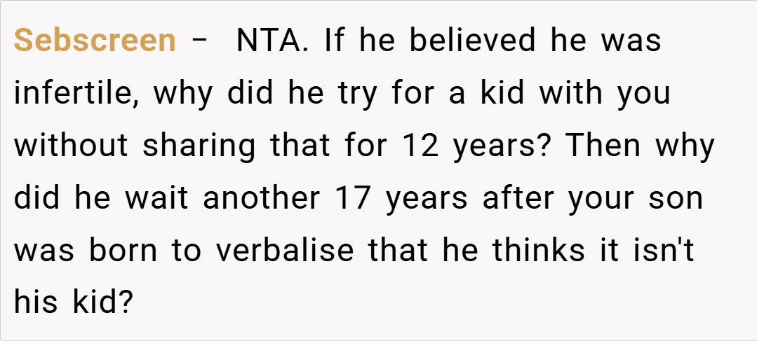That offhand comment was quickly forgotten by her until that evening, when he revealed a secret that had been hidden for years: in his previous relationship, after a miscarriage, tests revealed he was infertile. He then asserted that their son couldn’t be his and demanded a paternity test.