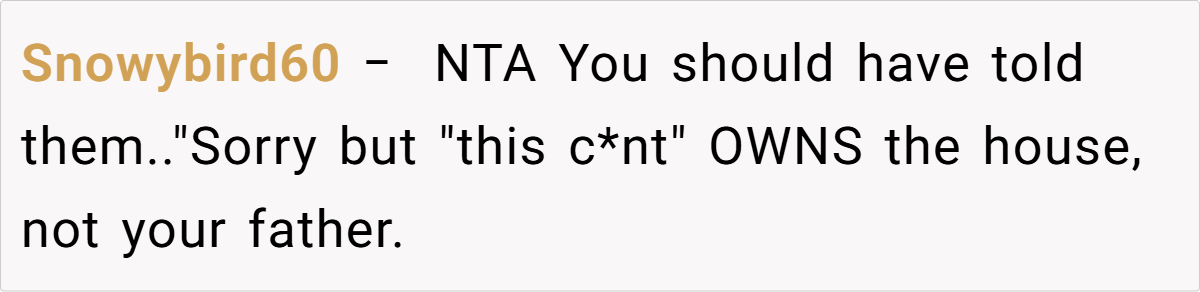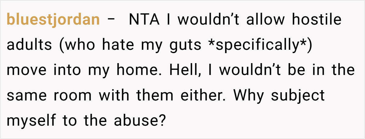 The Reddit community has weighed in with a mix of blunt honesty and humor, echoing the sentiment that boundaries are non-negotiable. Some commenters argue that the adult children should manage their own emotions and respect the clear lines drawn by the homeowner. Others emphasize that inviting disruptive behavior under the guise of “family” can lead to a downward spiral of conflict. Their candid hot takes capture the essence of modern family drama, where every opinion is as raw and unfiltered as the situation itself.