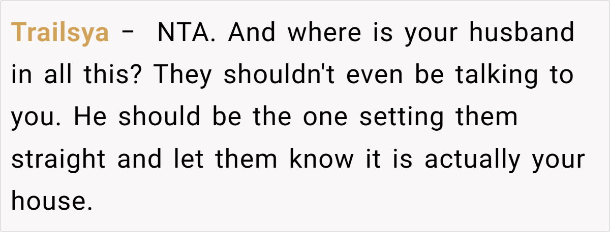 Another facet to consider is the role of accountability. The homeowner’s refusal to let her husband’s ex and children intrude into her domain isn’t merely about property—it’s about self-respect and the acknowledgment of past wrongs. When previous patterns of financial irresponsibility and disrespect resurface, it’s essential to reaffirm that the home is a personal haven.