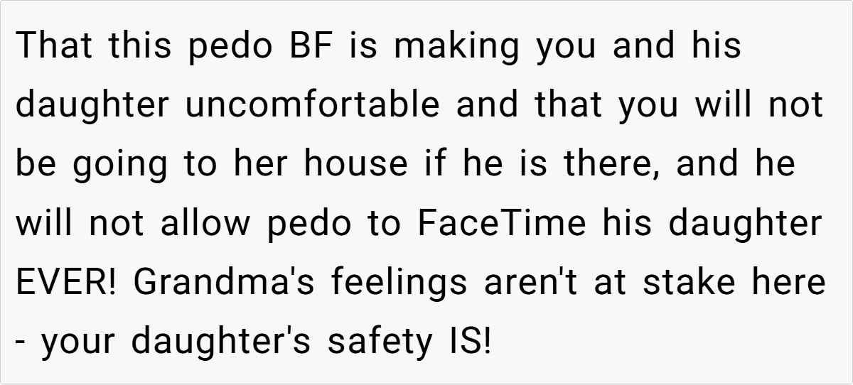 The post explores not only a personal crisis over a perceived attempt at grooming but also the broader issue of maintaining safe, respectful boundaries within extended family dynamics. With a mix of raw emotion and clear-headed determination, the writer’s decision to cut off contact with the problematic figure invites us to consider how far a parent should go in defending their child’s personal space.