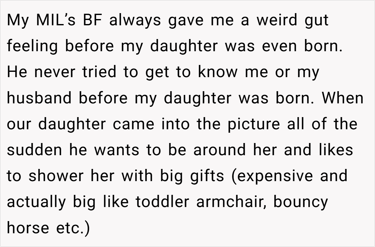 The holiday season—and even everyday family gatherings—can turn into battlegrounds when boundaries are crossed. In this case, a mother of a toddler recounts her growing unease about her mother-in-law’s boyfriend, a man whose behavior has raised serious red flags from before her daughter was even born.
