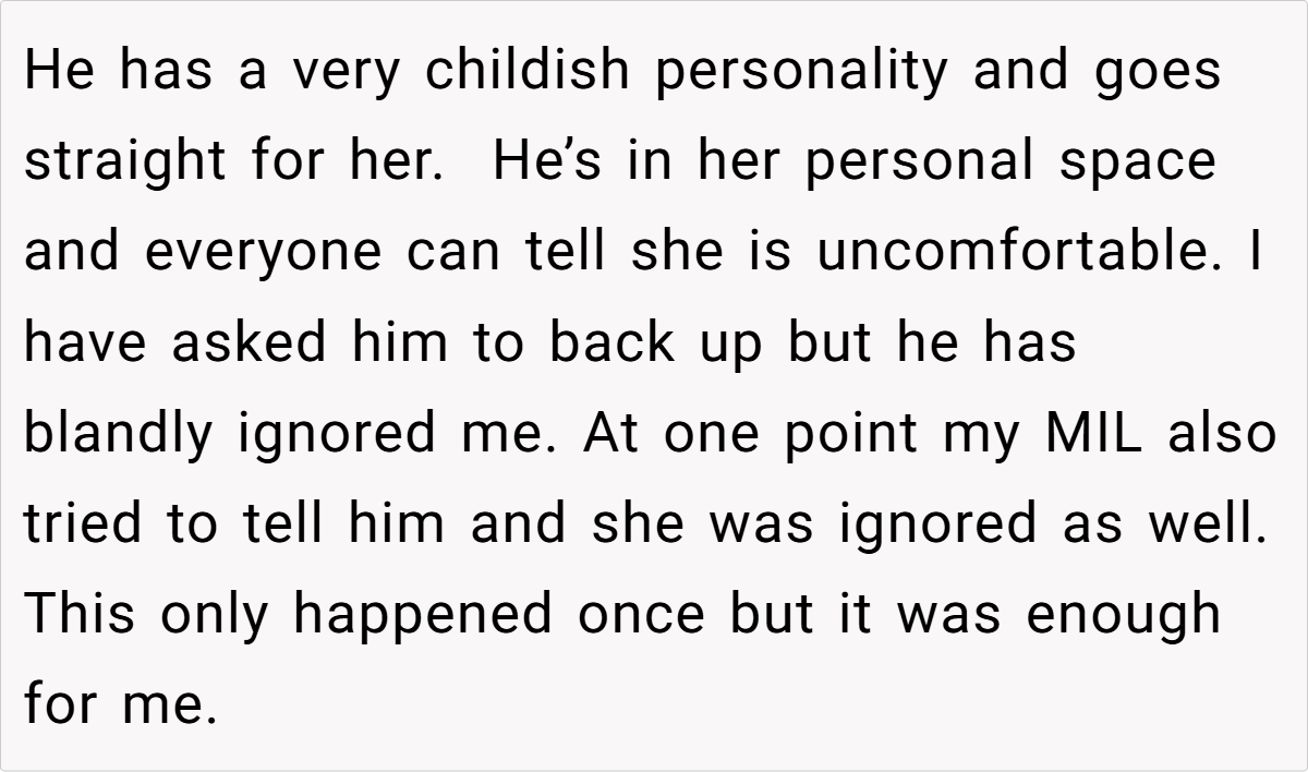 In a series of measured steps, the writer attempted to ask the boyfriend to give their daughter space. Yet when those requests were ignored—and even when MIL sided with him by downplaying his “boyish” nature—it became clear that subtle gestures were not enough. Experts advise that if behavior consistently infringes on a child’s comfort, parents must decisively intervene. Establishing strict rules is not about being overreactive but about prioritizing the child’s sense of safety and autonomy.