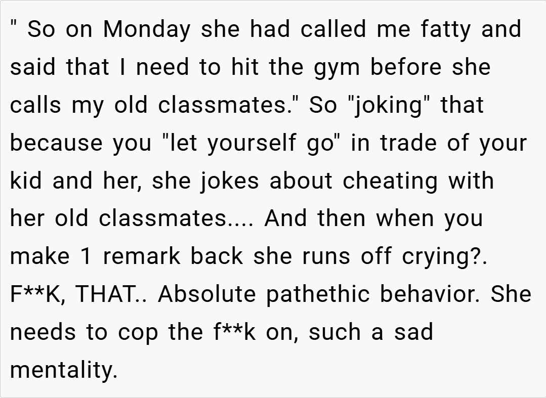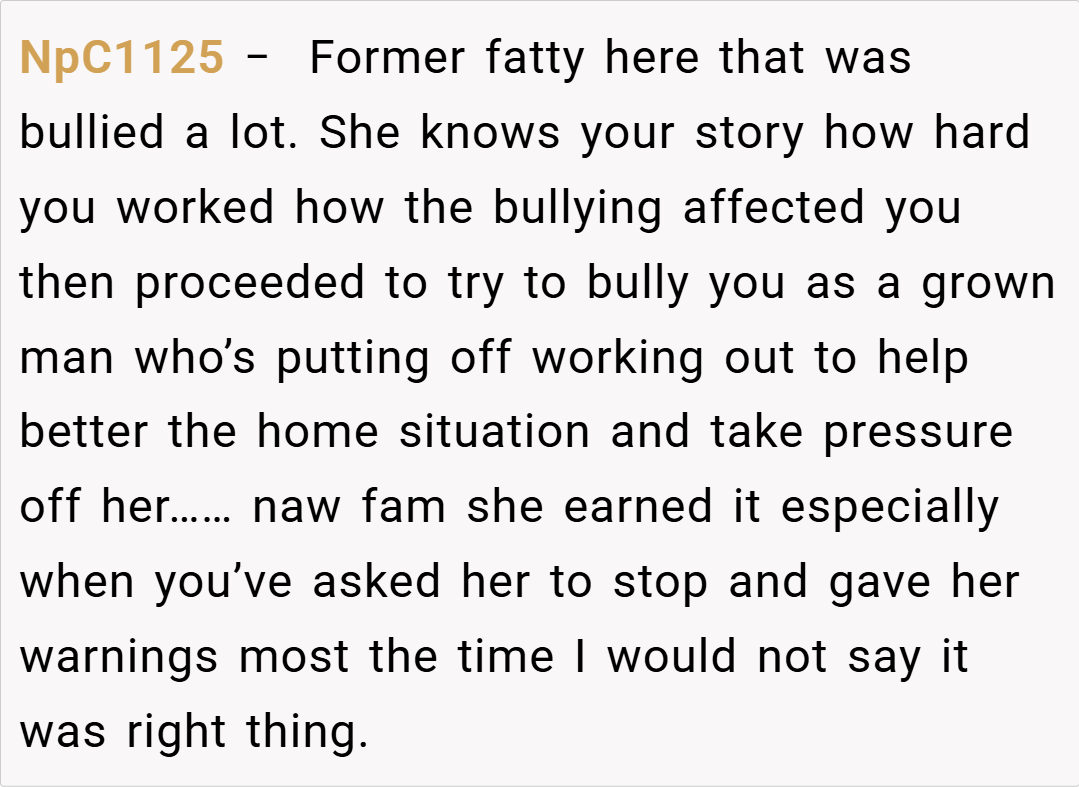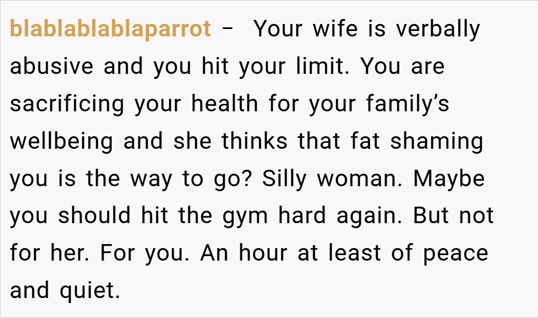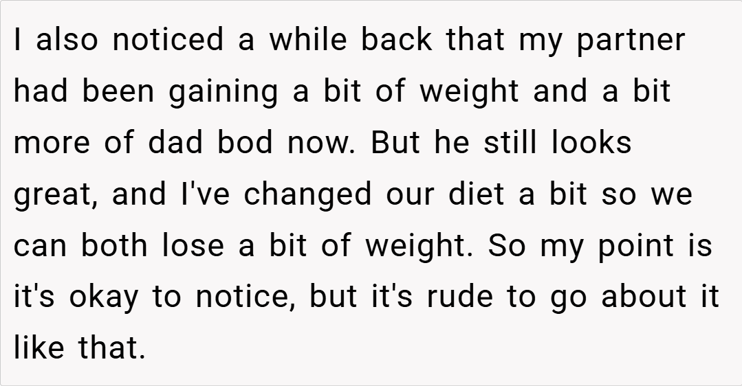 When tensions run high in a relationship, especially during the vulnerable postpartum period, hurtful words can trigger old insecurities and create a vicious cycle. In this case, the husband’s decision to echo his wife’s comments about his weight not only reflects the pain of past bullying but also highlights the stress that new parenthood can bring.