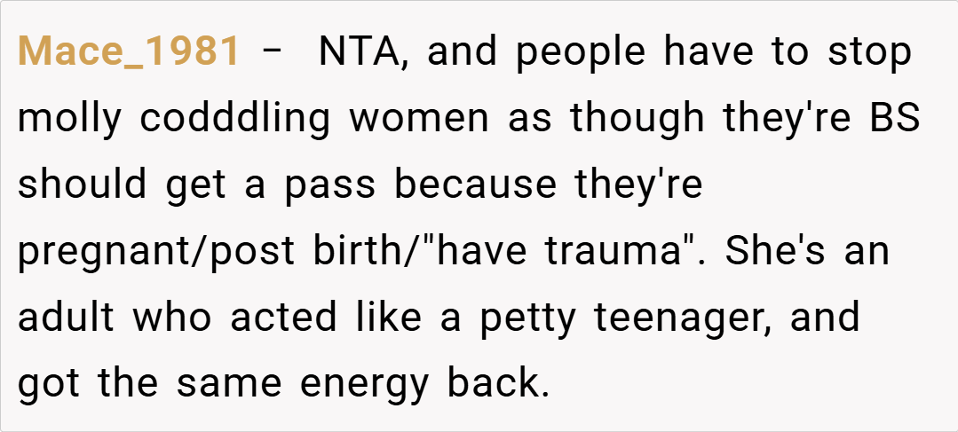 Redditors have offered a mix of sympathy and witty commentary, with many expressing that while postpartum challenges are real, echoing hurtful words only deepens emotional scars. The consensus leans toward encouraging both partners to find healthier ways to communicate, rather than resorting to mirrored criticisms that leave both feeling wounded.