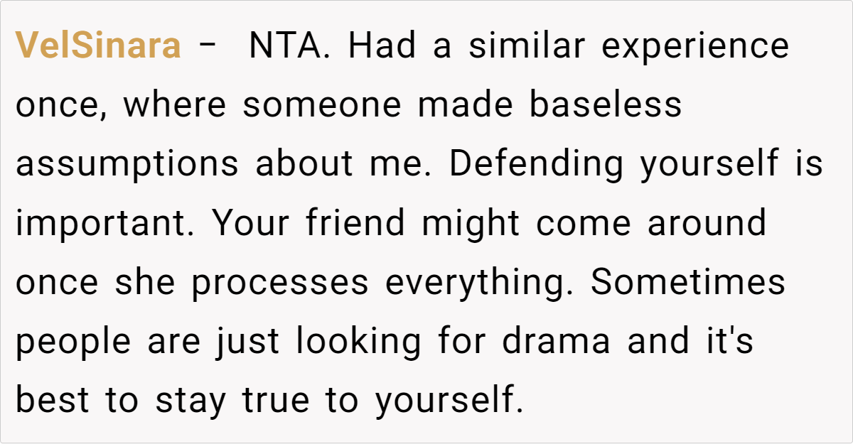 he OP’s decision to speak up was not intended as an attack but as a necessary assertion of his character. The incident, although it led to tears and raised tempers, also opened the door for others present to witness the importance of holding individuals accountable for their words and assumptions.