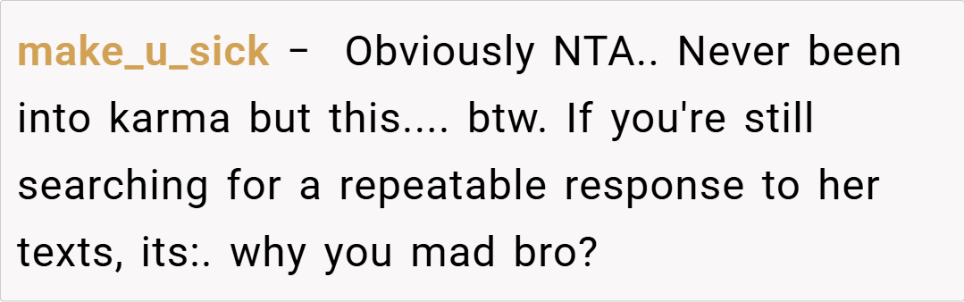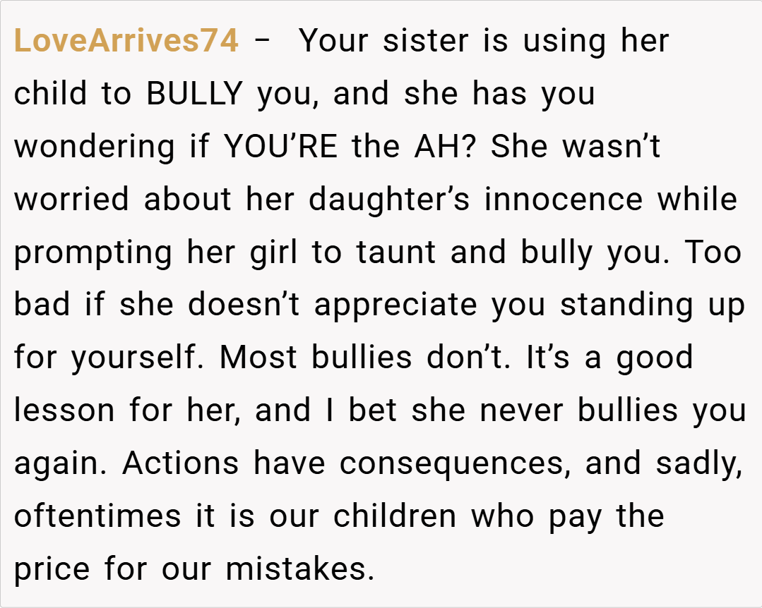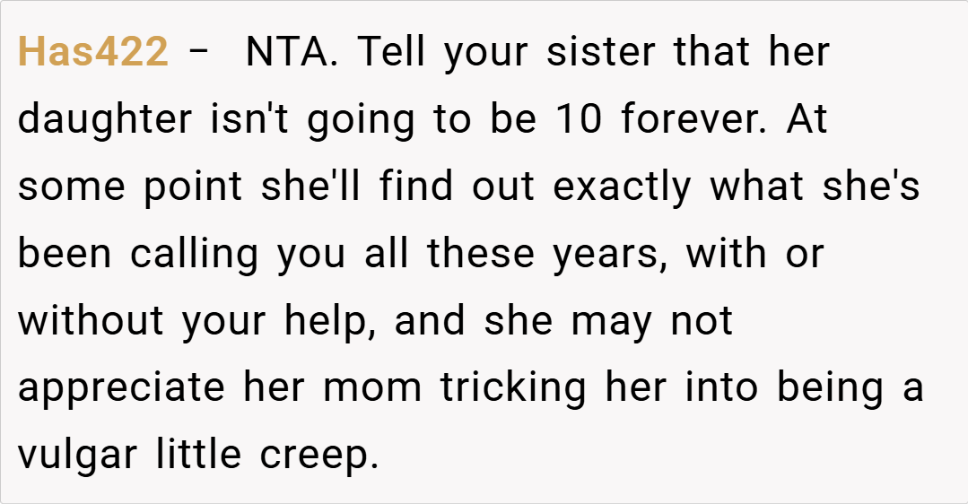 Many redditors empathize with the OP, noting that when your identity has been the butt of jokes for years, a strong boundary is completely justified. “If your own sister can’t respect your feelings, you deserve to speak up—no matter how blunt it sounds,” one commenter wrote.