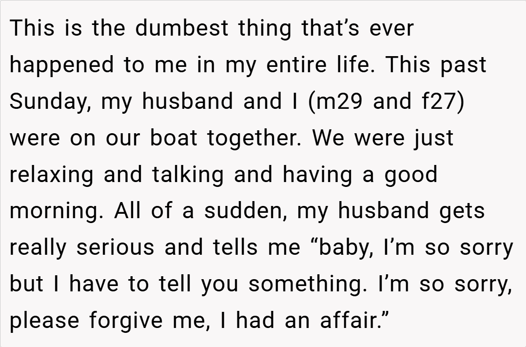 In this story, a 27-year-old wife recounts how a seemingly offhand remark on a boat—a declaration of infidelity that felt all too real—sent her into a fury that led her to throw her sentimental rings into the ocean. With a mix of heartbreak, anger, and disbelief, she now questions whether her explosive reaction was justified or simply an overblown response to a prank gone terribly wrong.
