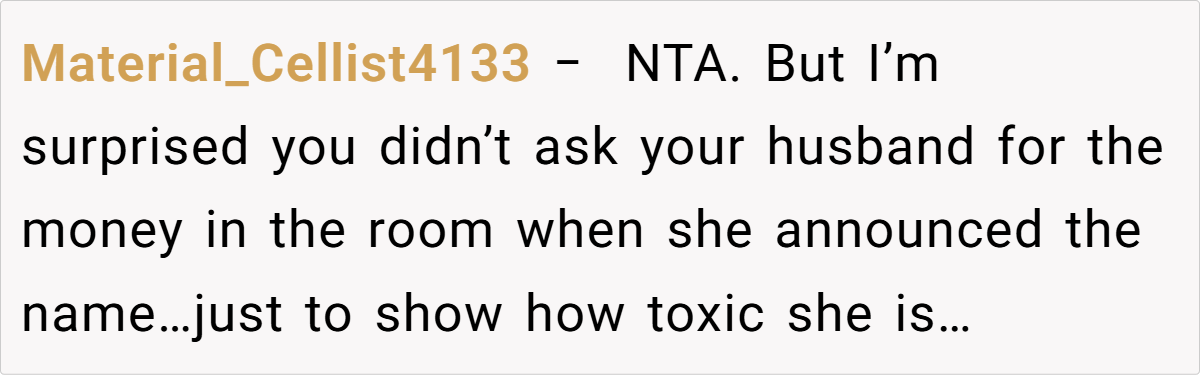 This incident not only unveils the pettiness that can lie beneath the surface of family interactions but also sparks an important conversation about boundaries and respect. When personal space is invaded, even in seemingly trivial matters like baby names, the repercussions can ripple throughout the family dynamic. What do you think is the best way to handle manipulative in-laws or overly intrusive behavior? Share your thoughts and experiences in the comments below—let’s discuss how we can all better navigate the intricate dance of family relationships.