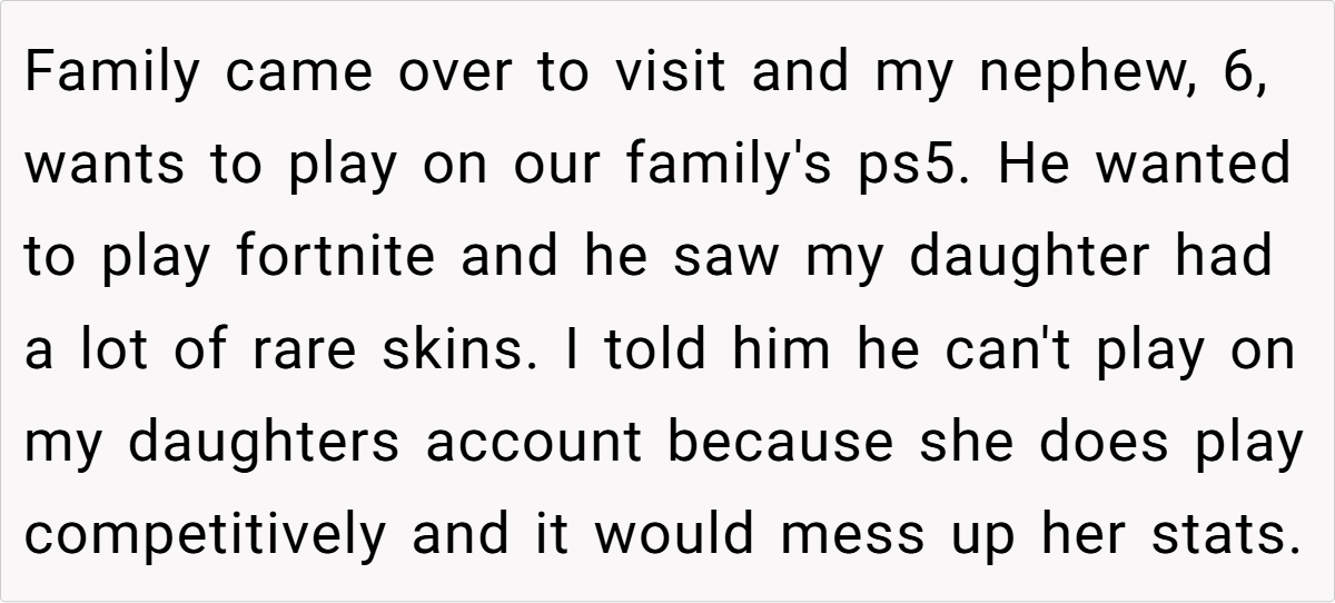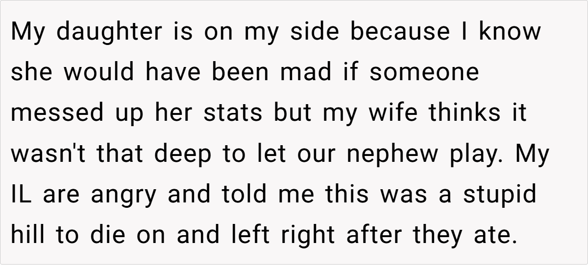 The tension escalated as a protective parent refused to let his daughter’s hard-earned game stats be jeopardized by casual play. Amid fervent pleas, sharp retorts, and a flurry of conflicting familial opinions, what began as a simple request evolved into a deeper debate about respect, fairness, and the boundaries that define personal accomplishments in today’s digital age. This incident invites reflection on how we balance individual passion with collective family experiences.