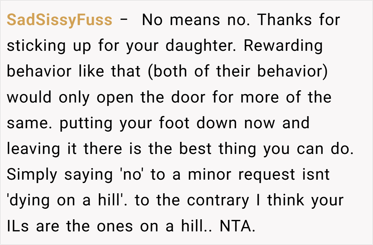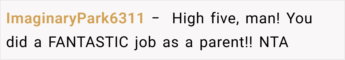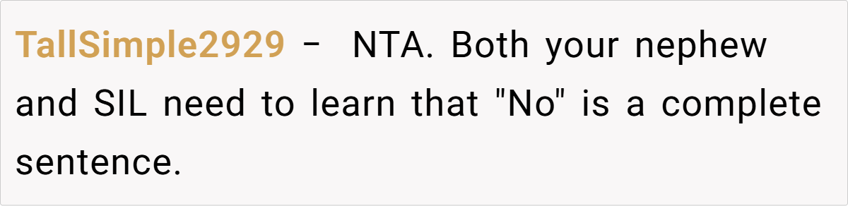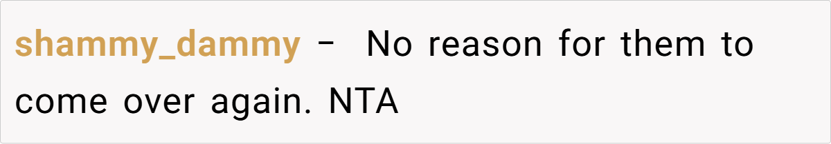 Several commenters highlighted that setting clear boundaries is essential, even if it means sparking a bit of family drama. At the same time, a few voices suggested that a more flexible approach might have prevented the conflict altogether. This mixture of support and gentle critique reflects the community’s nuanced view on balancing individual interests with family harmony.