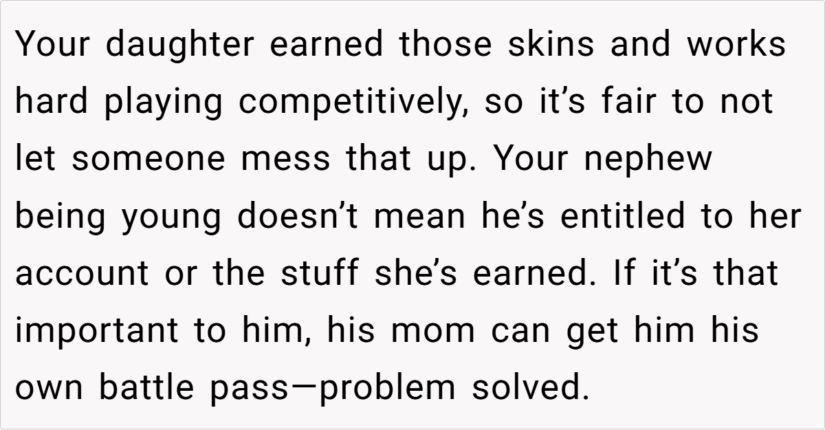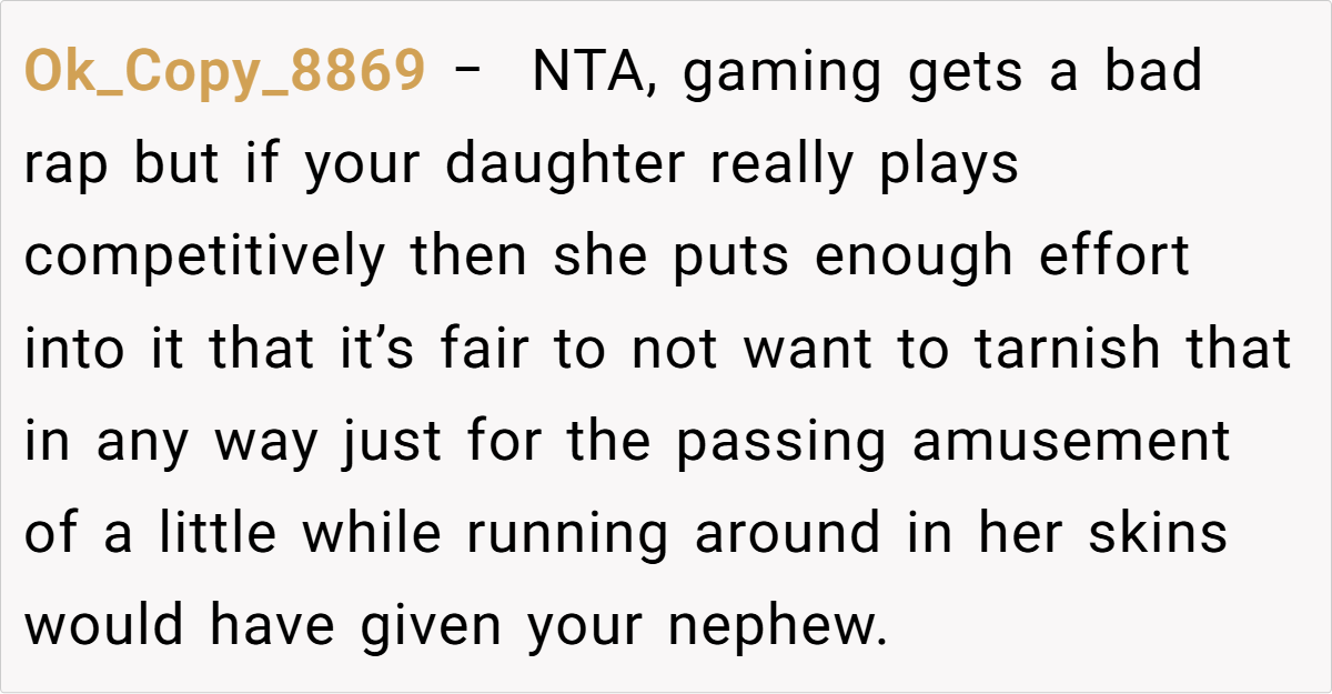 The Reddit community offered a broad range of reactions to the incident. Overall, many users backed the parent’s decision to protect the daughter’s competitive account, emphasizing the importance of respecting personal digital achievements.