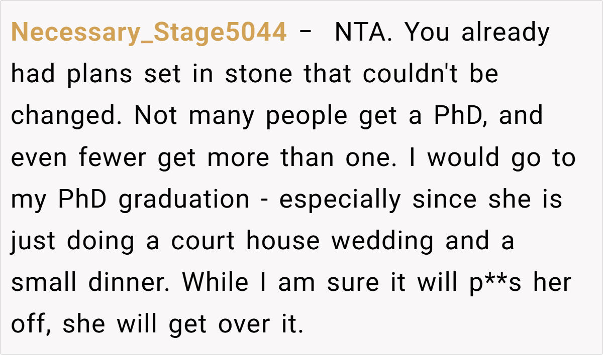AITAH If I Choose to Go My PhD Graduation Instead of My Sister’s Wedding?