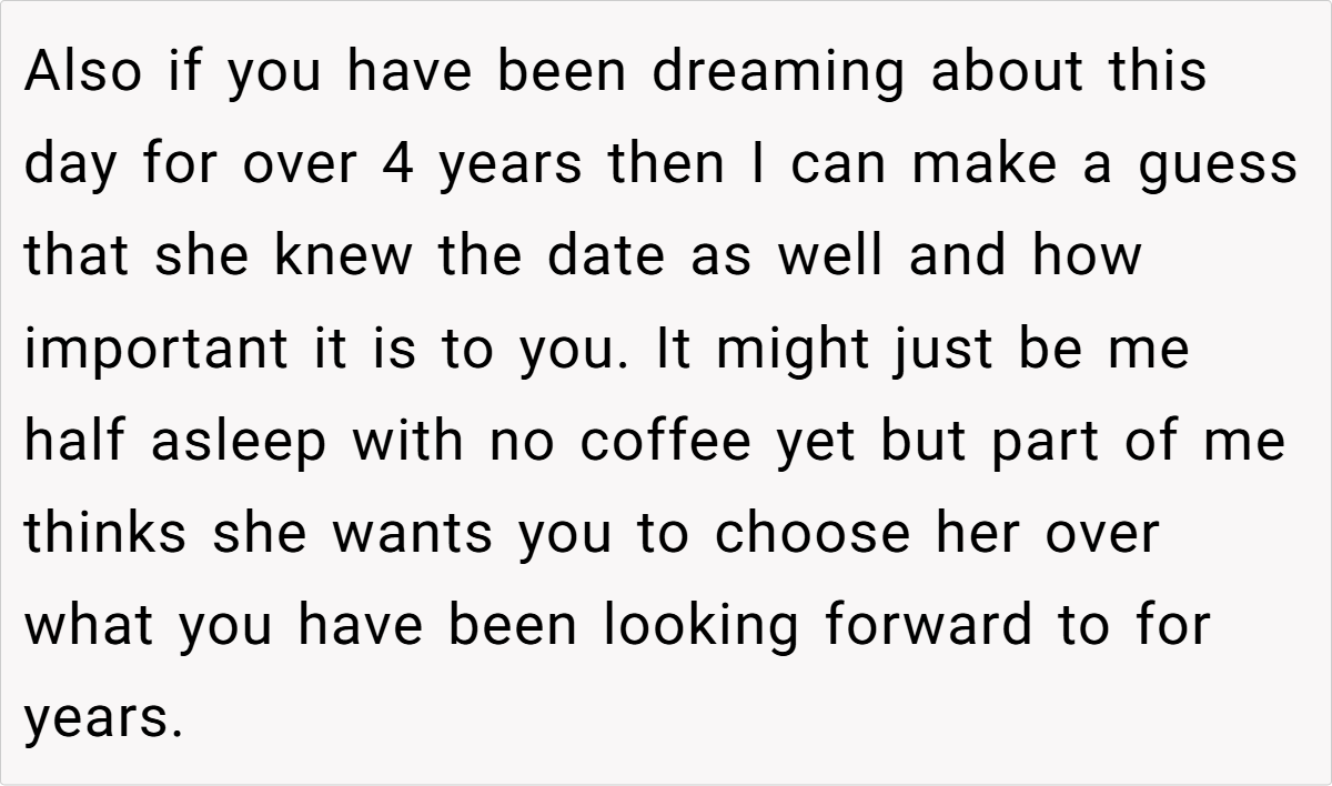 According to renowned relationship expert Dr. John Gottman, “The secret to a happy relationship is not avoiding conflict but learning how to manage it effectively.” This insight encourages us to understand that prioritizing one meaningful event over another doesn’t automatically label someone as uncaring—it can simply be a matter of personal fulfillment and timing.