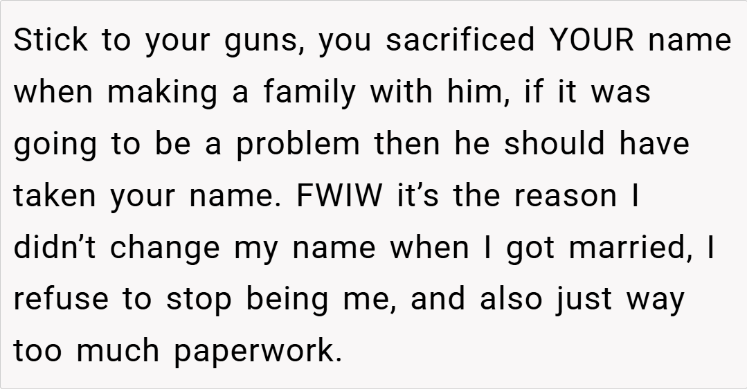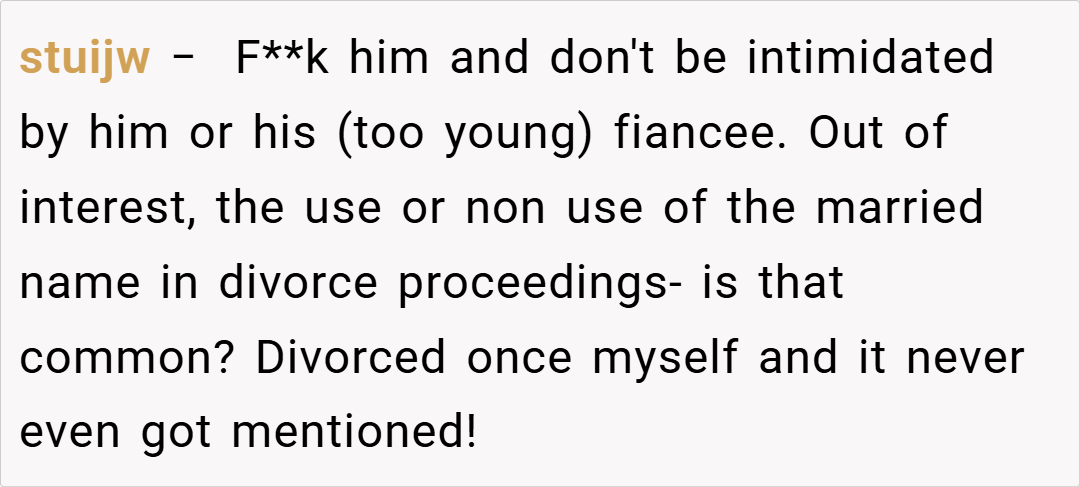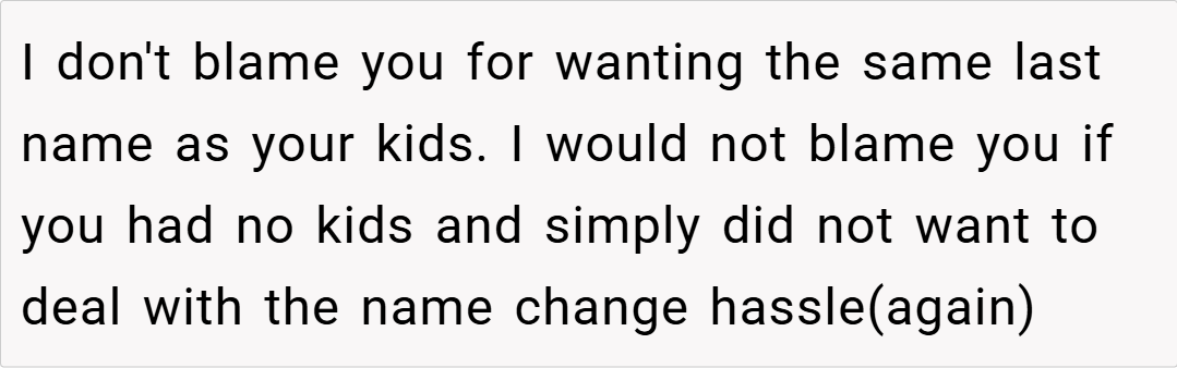 Navigating the delicate balance between personal identity and evolving family relationships is never straightforward. In this case, the ex-wife’s stance to retain her last name is deeply rooted in her sense of self and her connection to her children. For her, her name is more than just a label—it’s an emblem of her past, her growth, and the legacy she shares with her family.