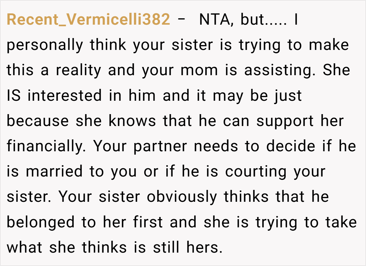 ‘AITAH – My mom feels my sister should have married my husband instead of me?’