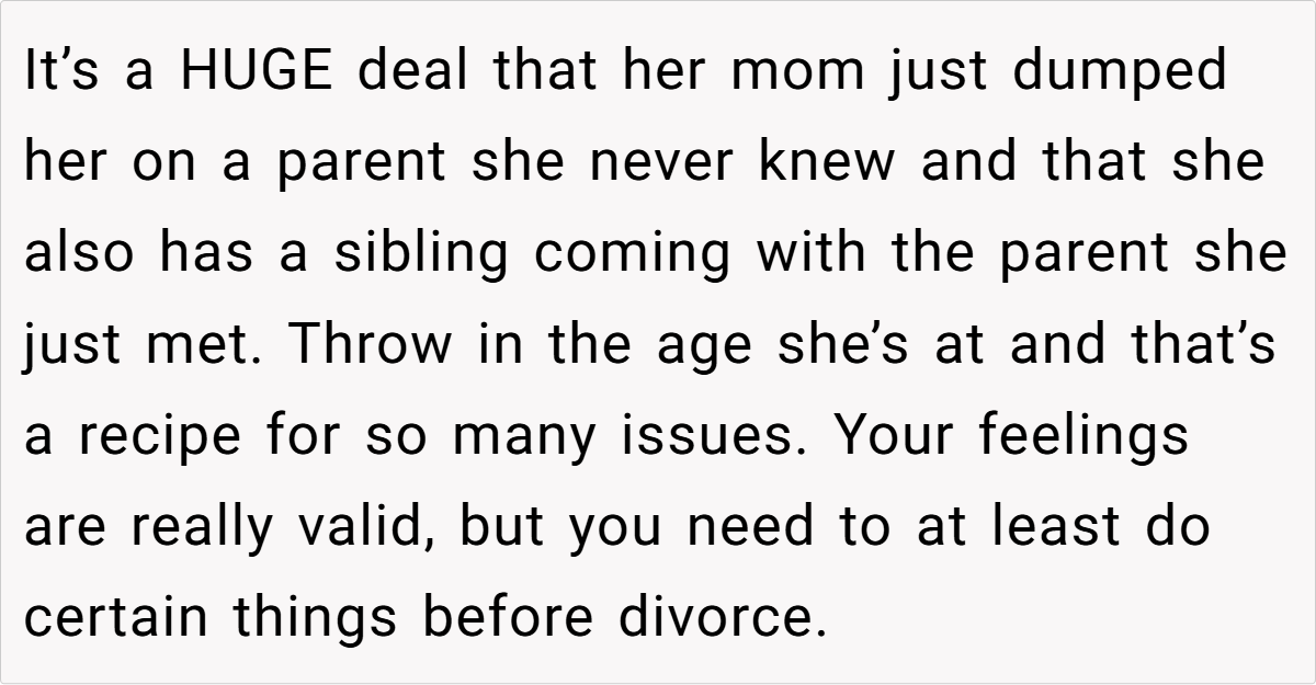 This means that while the husband’s attempts to accommodate his stepdaughter might be aimed at easing her transition, they can also create a void if the emotional needs of the other partner are neglected. Without honest discussions about each person’s expectations and feelings, resentment can build, ultimately undermining the marital relationship.