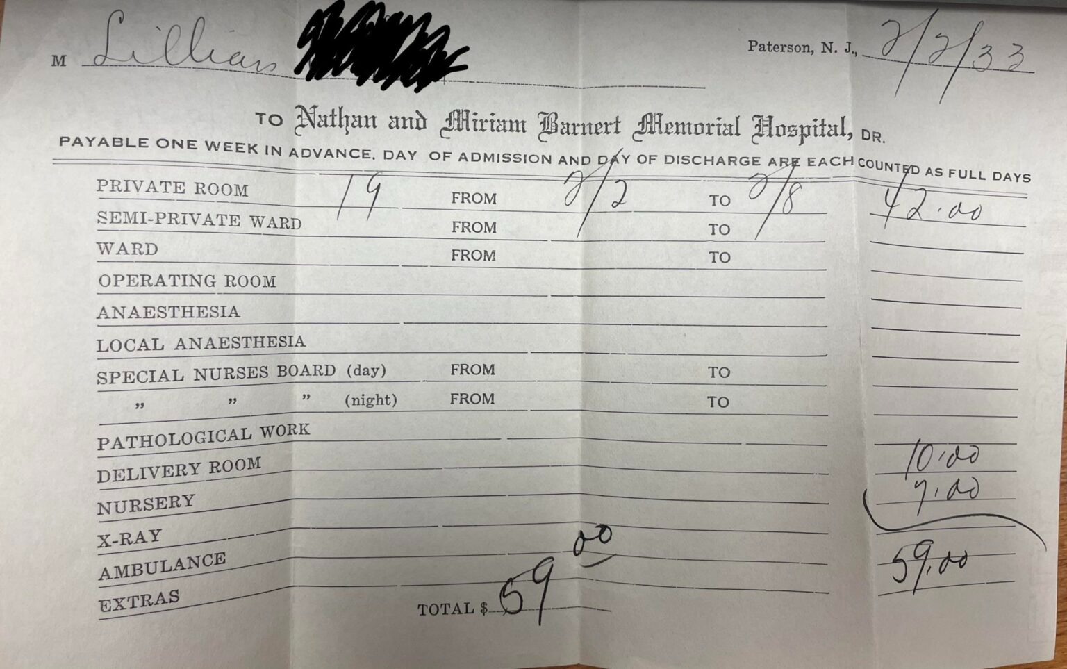 Then: $59 hospital discharge in 1933.
