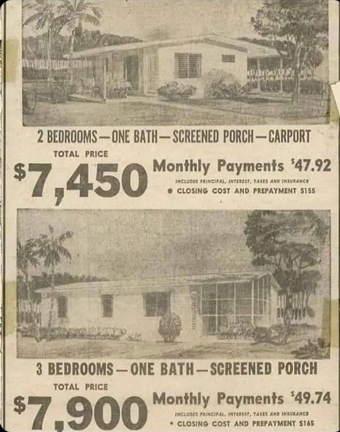 In fact, advertisements from the 1960s showed stylish, modern homes for less than $17,000. Mortgages were also significantly more affordable, with monthly payments often under $50.