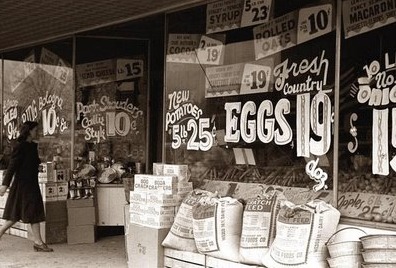 Then: Fresh eggs for 19 cents a dozen.