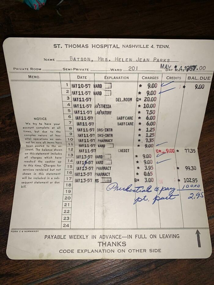 Healthcare is another area that’s seen tremendous inflation. A hospital bill from 1933 shows a discharge fee of just $59, while the cost of delivering a baby in 1957 was a mere fraction of what it is today.