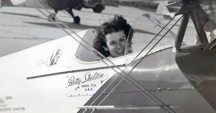 Skelton’s dad, David, held an amateur airshow in 1945 to raise money for the local Jaycees. When the airport manager in Tampa suggested Bettydo some basic stunts, she accepted the challenge though she’d never done aerobatics before. She borrowed a Fairchild PT-19 and was taught by Clem Whitteneck, a famous aerobatic pilot from the 1930s. Within two weeks, she got the hang of it and mastered simple tricks at the air show, which she would perform on the show.