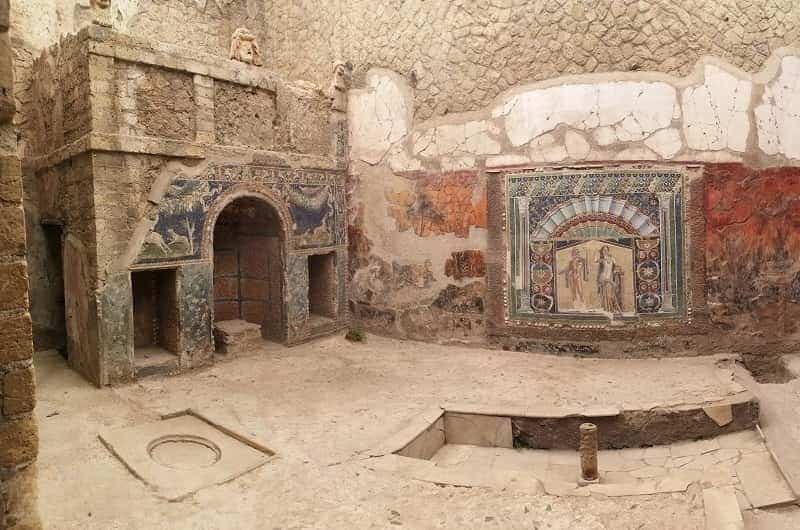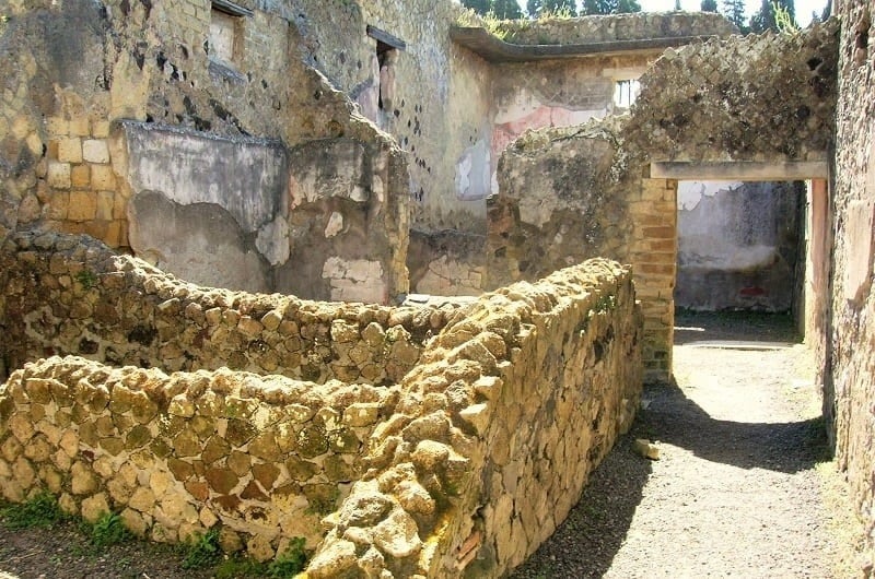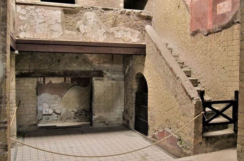 The House of the Carbonized Furniture, one of the oldest in Herculaneum, features charred furniture pieces.