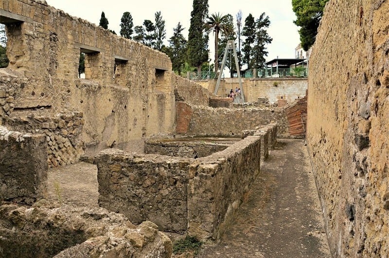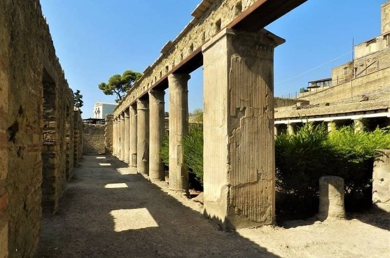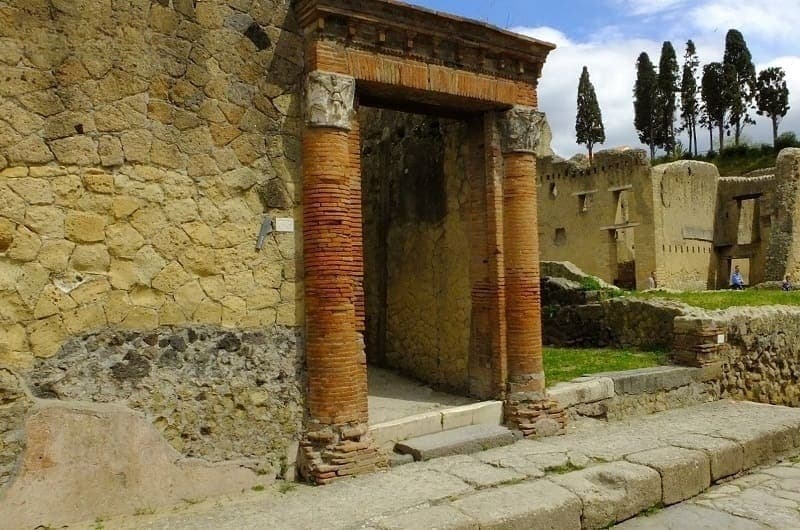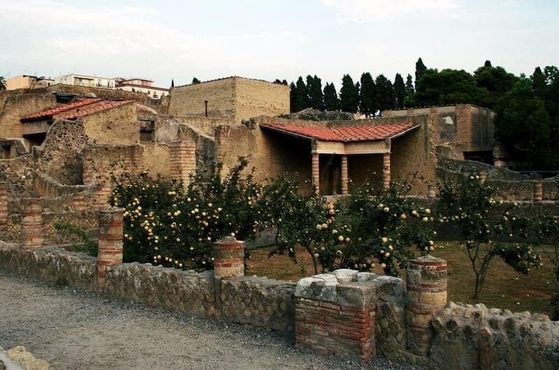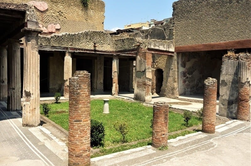 Although buried by the catastrophic eruption of Mount Vesuvius in 79 AD, Herculaneum’s houses remain well-preserved.