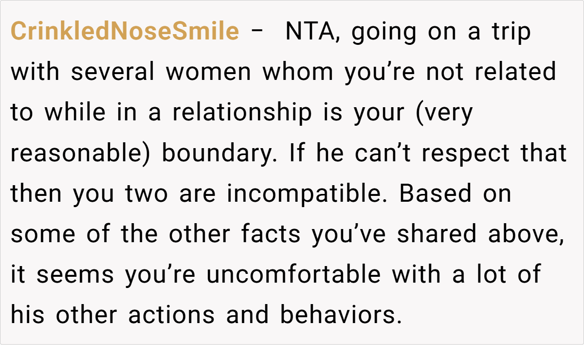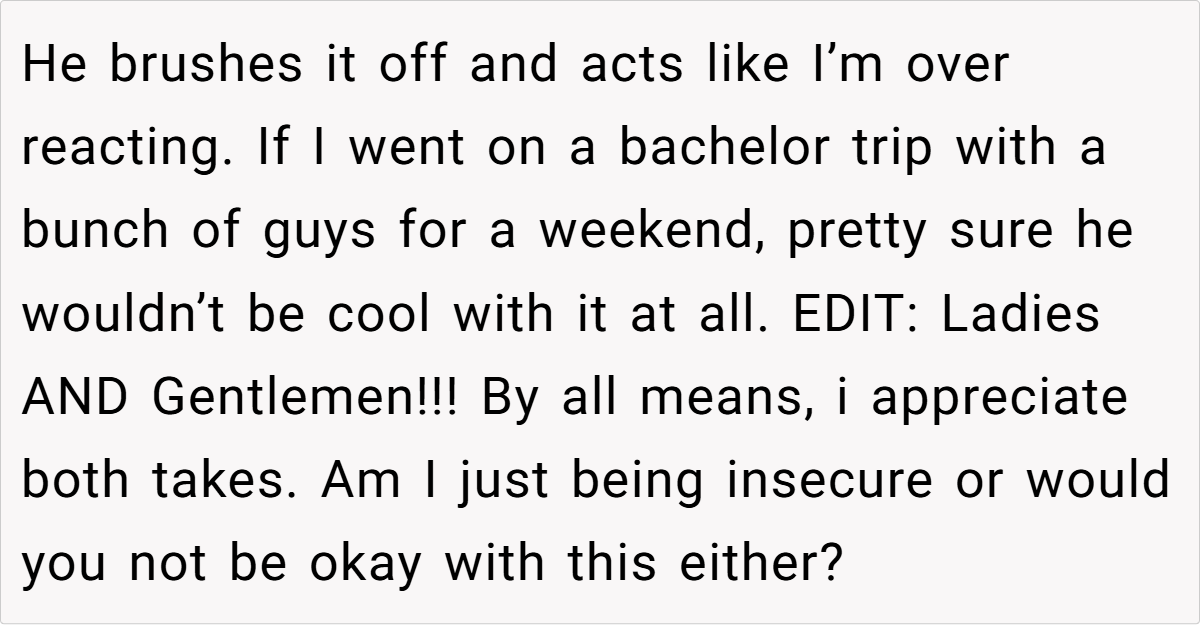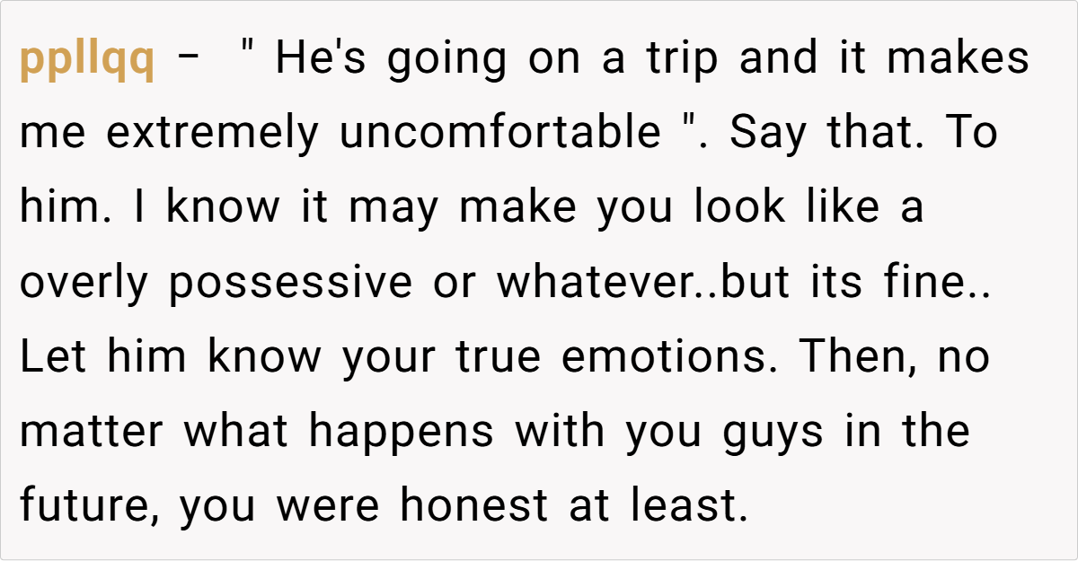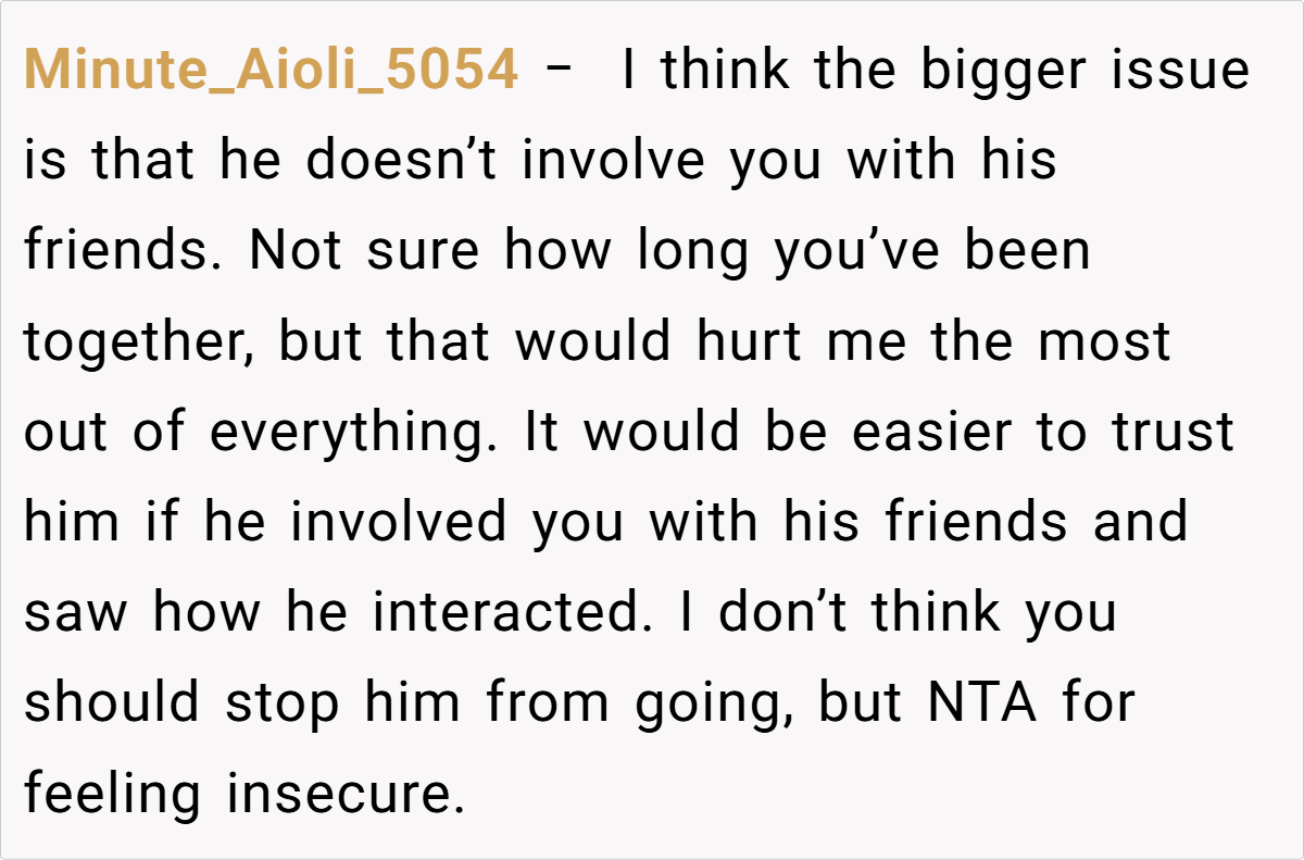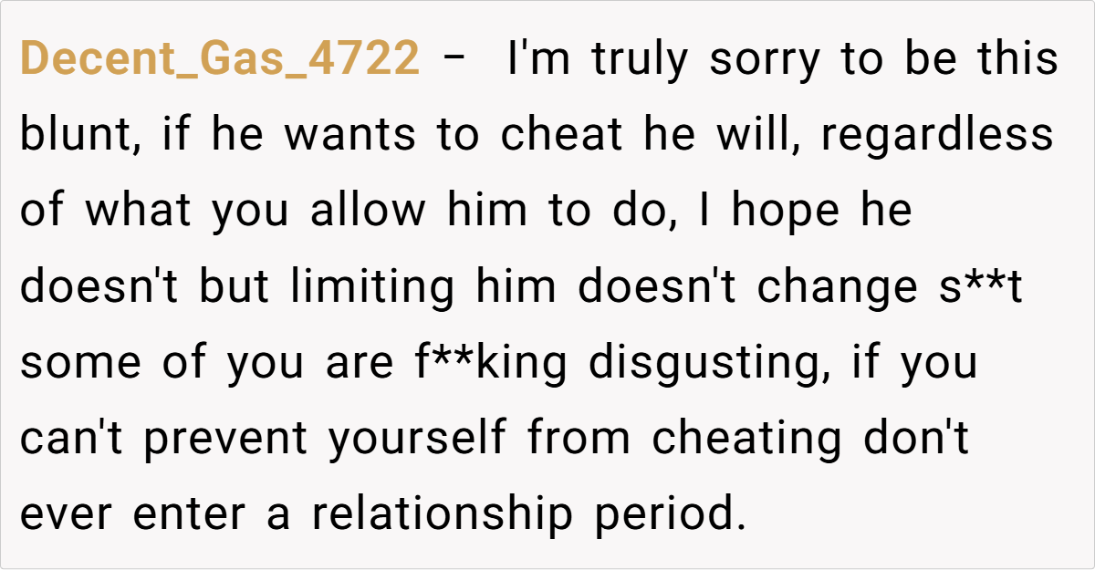 Here are some candid and humorous hot takes from the community. The Reddit responses range from blunt advice to empathetic insights, with some critics urging the OP to demand more inclusion, while others warn that controlling boundaries may backfire. One voice pointedly noted that if a partner is intent on straying, no amount of restrictions can change that. These varied opinions underscore the complex interplay of trust and independence in modern relationships.