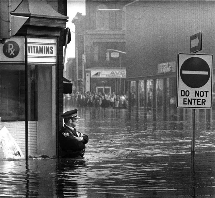 Const. John Shuttleworth wore waders as he stood waist-deep in Cambridge on May 17, 1974