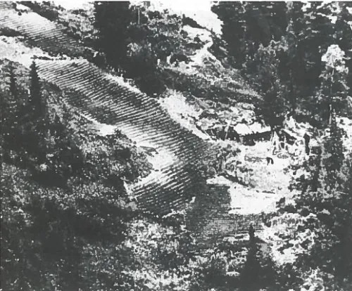 The crew was searching for a landing spot for a group of geologists when they spotted something unusual: a small clearing, 6,000 feet up a mountainside, far from any known settlement.