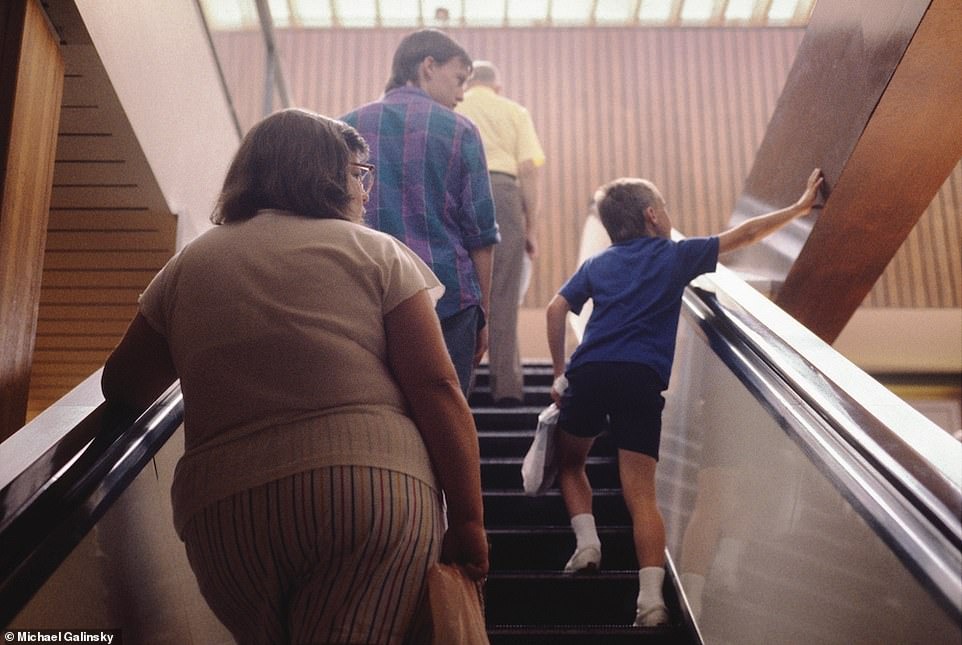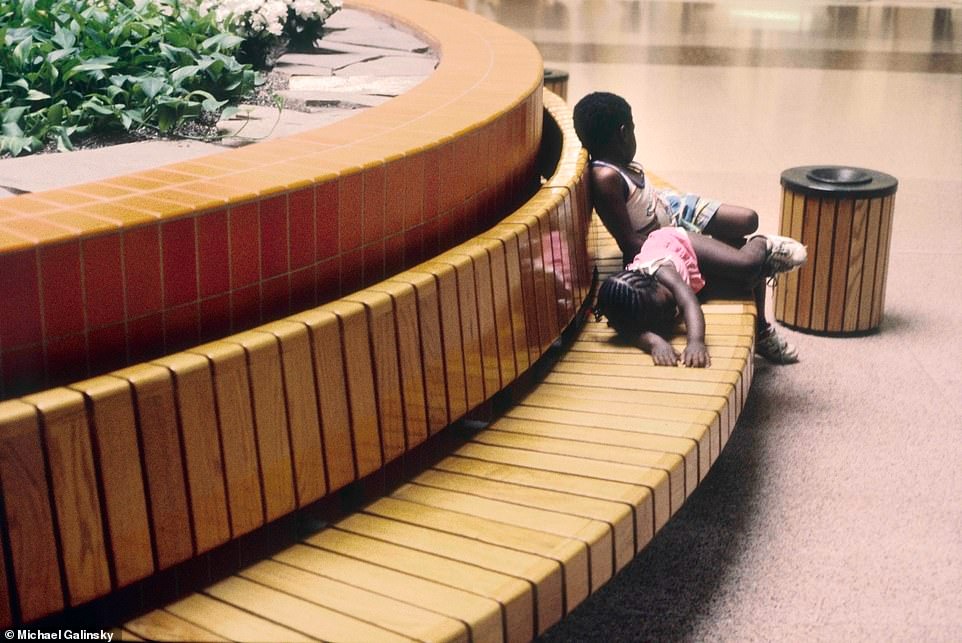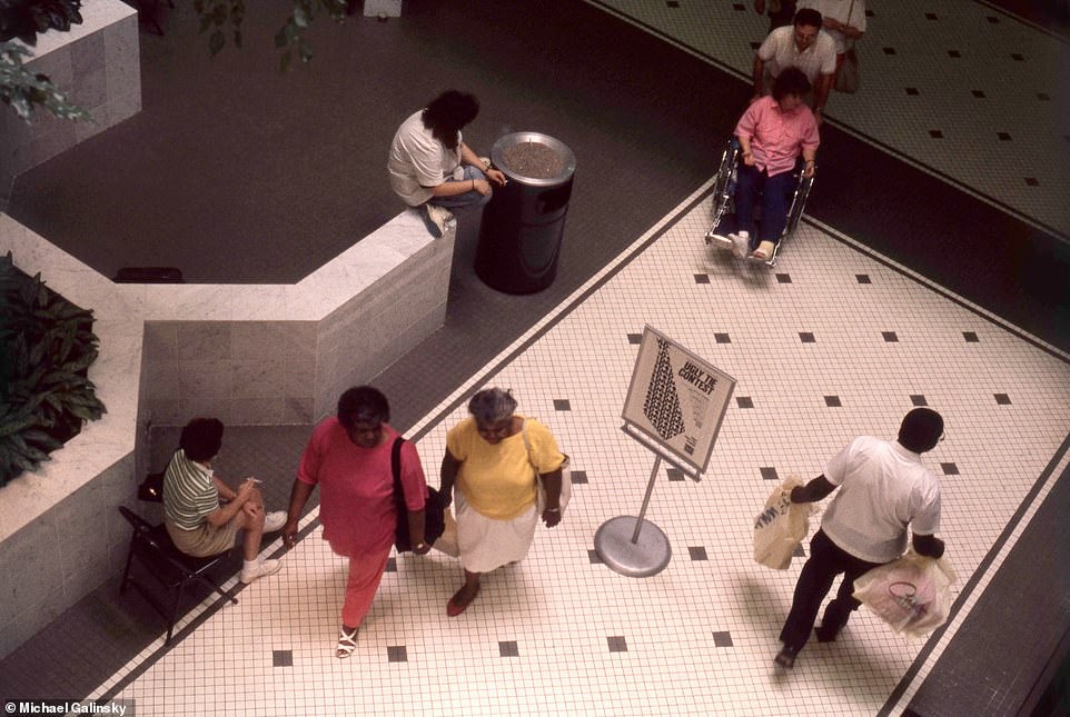 Galinsky’s photos show families navigating the crowded halls, stopping to take in the bustling energy of the mall.