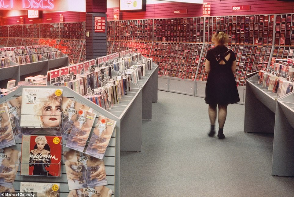 Shoppers could browse the latest releases, and artists like Madonna, Michael Jackson, and Bon Jovi dominated the sales racks.