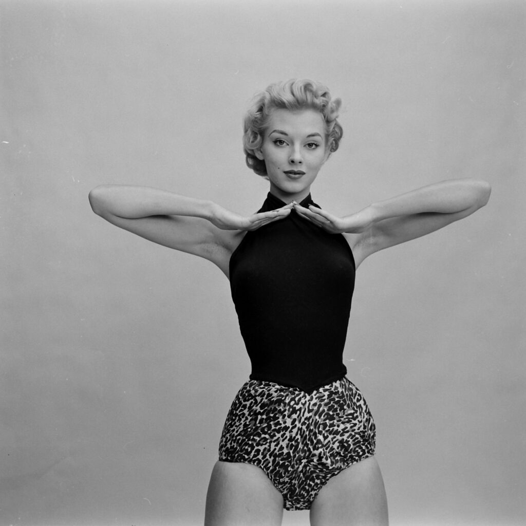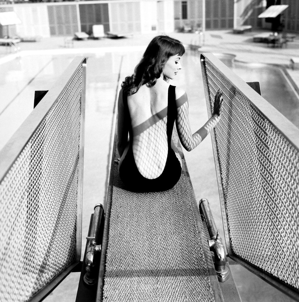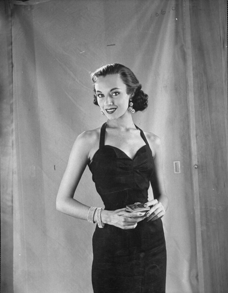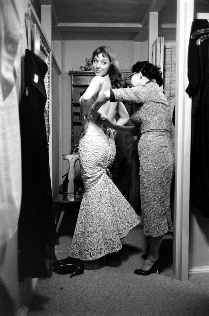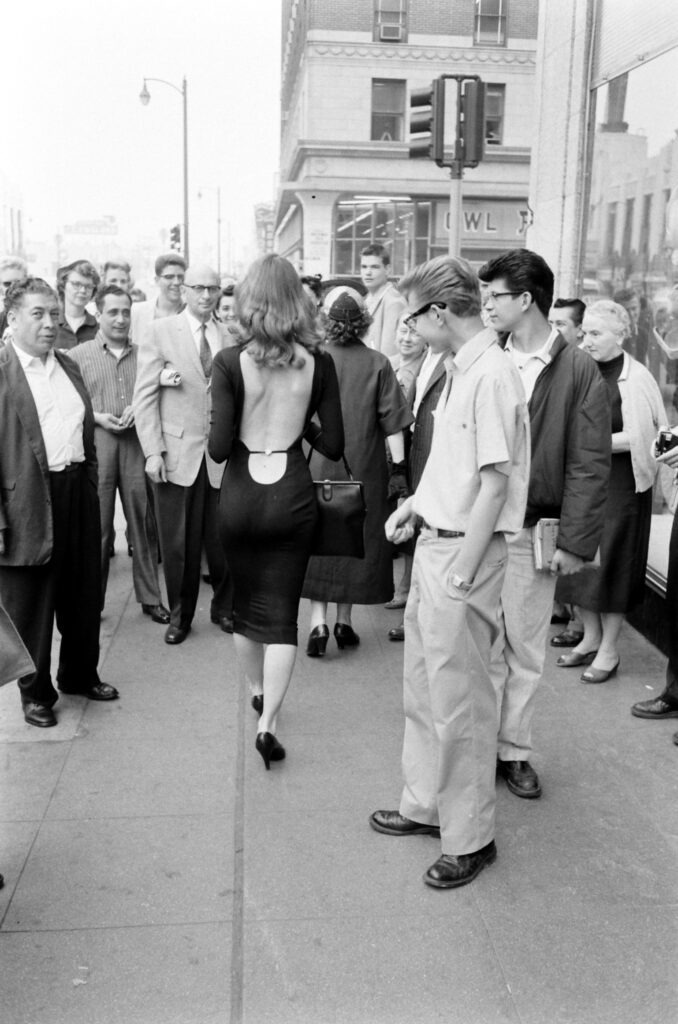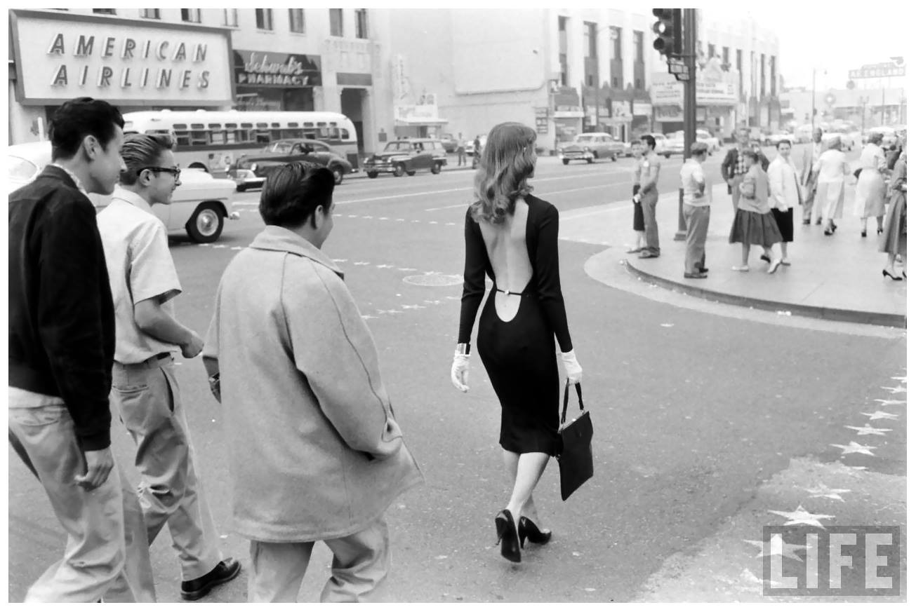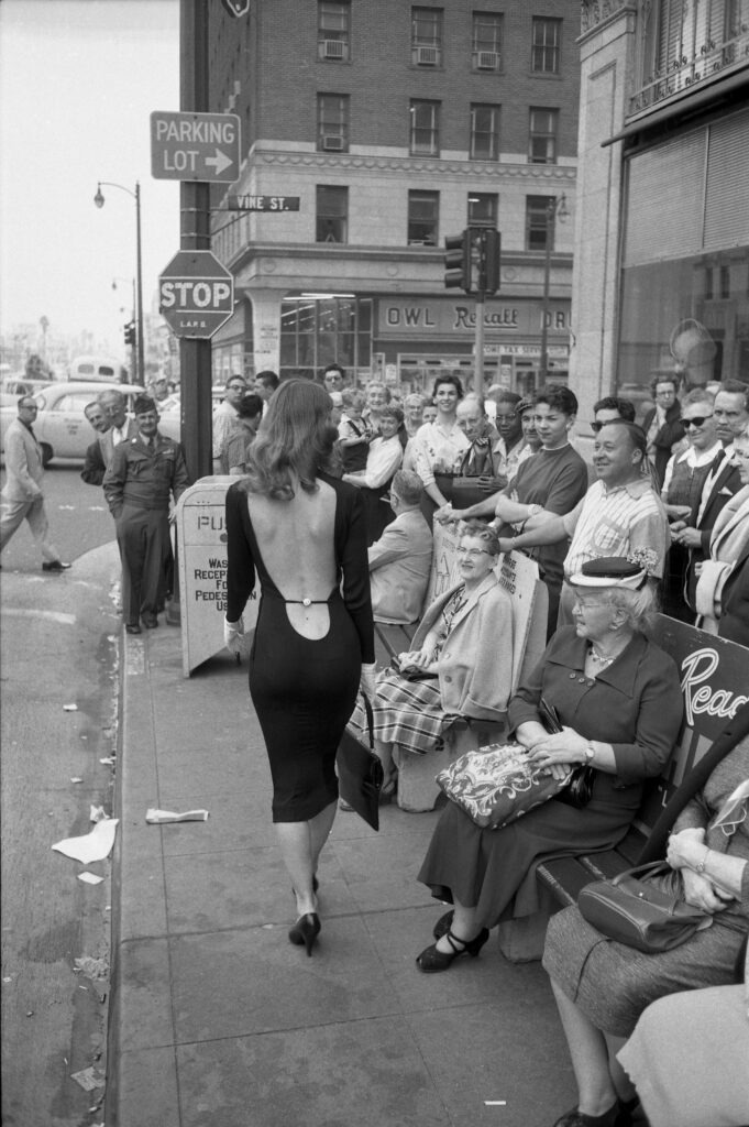 24. Model and actress Vikki Dougan wore a backless dress while walking in Los Angeles, 1957