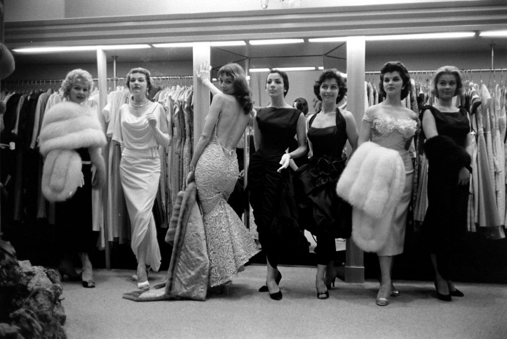 13. Vikki Dougan alongside other models, wearing one of her signature backless gowns