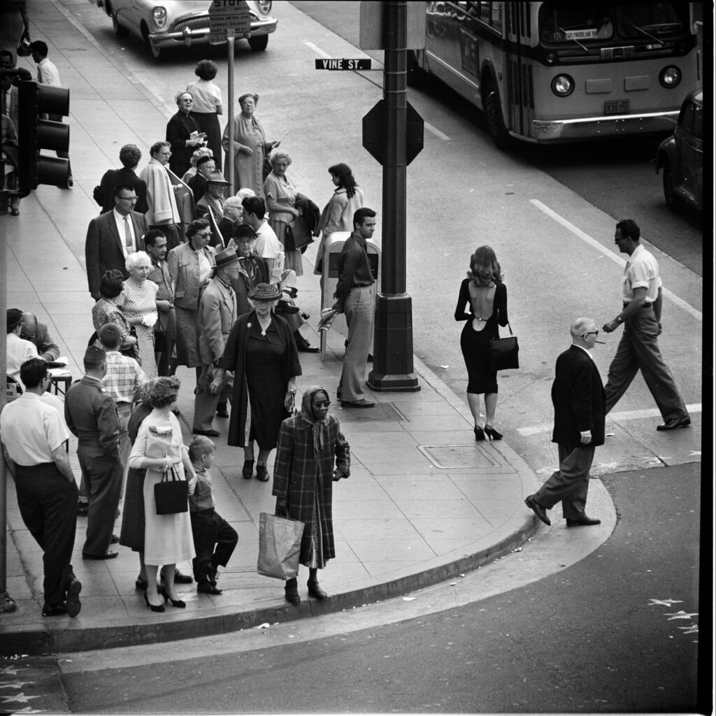 23. Vikki Dougan walked past crowded park benches in Los Angeles, 1957