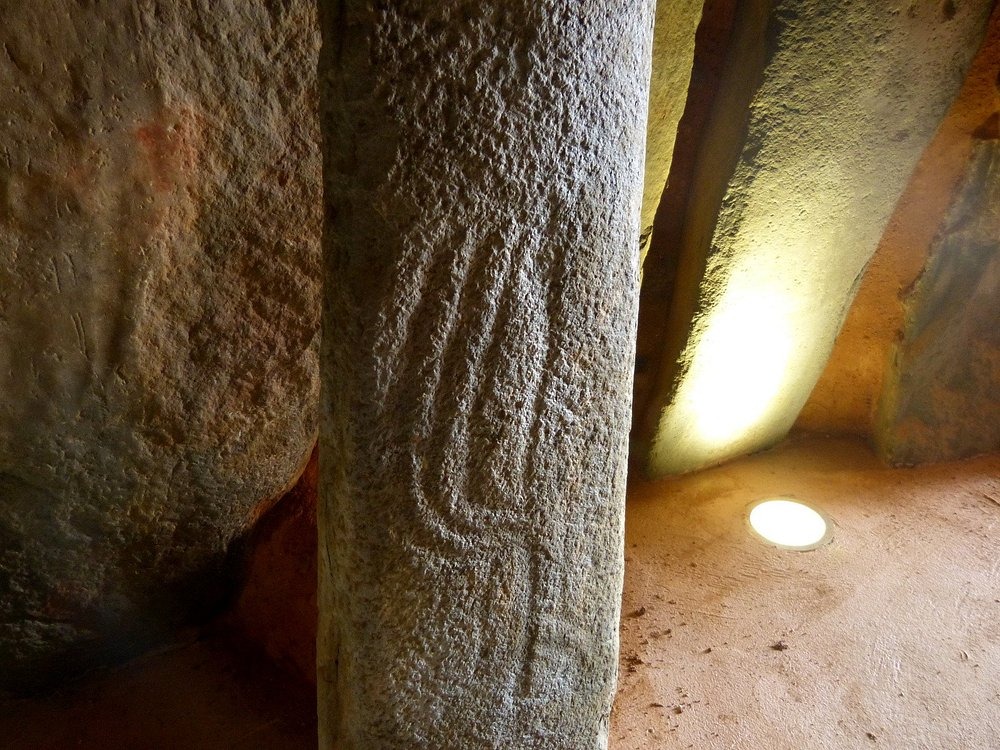 Out of the 64 standing stones that form the passage, 43 are decorated with carvings.