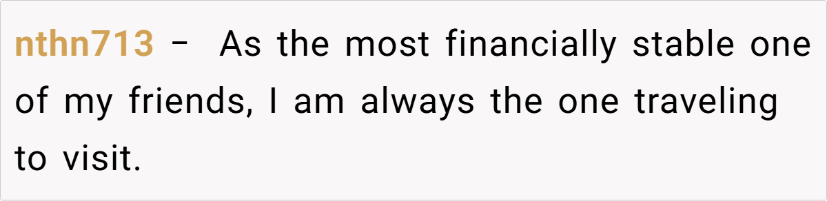 The general sentiment is that if someone genuinely wants to see you, they’ll make the effort themselves. Whether it’s through witty one-liners or blunt anecdotes, the collective message is that mutual effort—and a little self-respect—are key to maintaining balanced relationships.