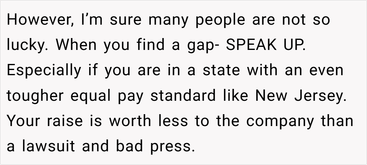 This doesn’t have to be a dramatic confrontation—it’s simply about ensuring everyone is compensated fairly. Also, if you’re facing resistance from your employer, remember that laws such as the Lilly Ledbetter Act give you the power to speak up without fear of retaliation.