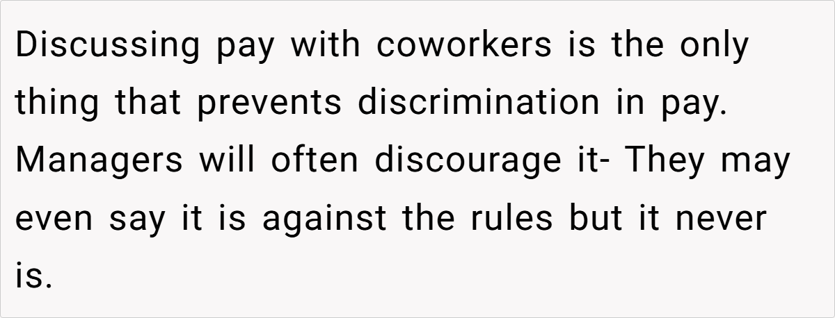Navigating workplace conversations about salary can be tricky, but it’s vital for maintaining fairness. As pointed out in the Reddit post, discussing pay isn’t just an act of curiosity—it’s a way to ensure equitable treatment for all employees. In fact, federal law protects employees who engage in these conversations, specifically the Lilly Ledbetter Fair Pay Act of 2009, which allows workers to compare wages without fear of retribution.