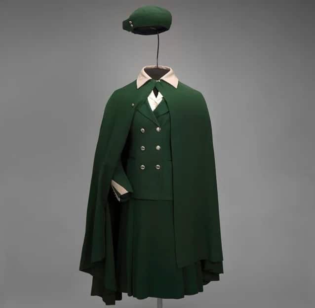 Frances, a fashion historian and stylist, said: “Their uniforms were extremely structured, resembling military attire. Greens and grays were used to create wool skirt suits, capes, and hats.”