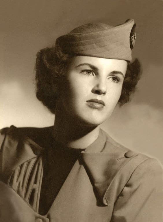 During World War II, there was less fabric available, so uniforms became simpler and more fitted. Capes were gone, and the new style included blazers, skirts, hats, and small heels in muted colors.