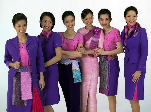 Indian airlines often issue saris for their female flight attendants, while Thai Airlines’ female attendants wear Thai silk uniforms with an orchid on their lapel. Singapore and Malaysian airlines incorporate traditional sarong kebayas, a blouse-dress combination, into their uniforms.