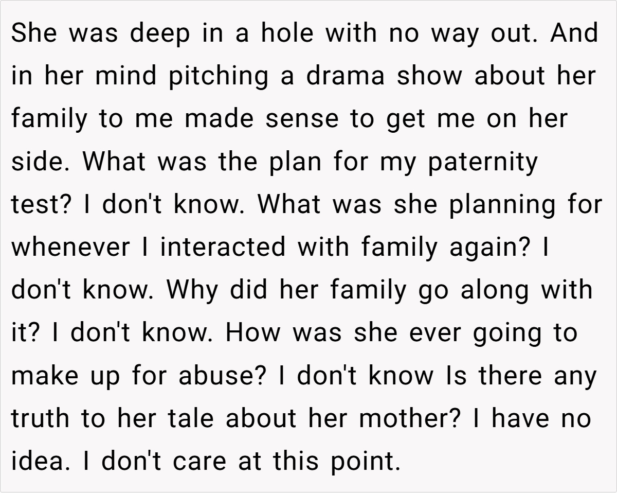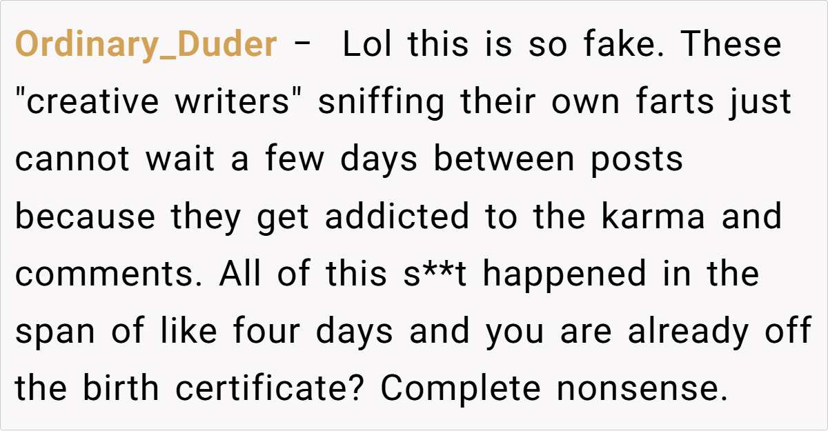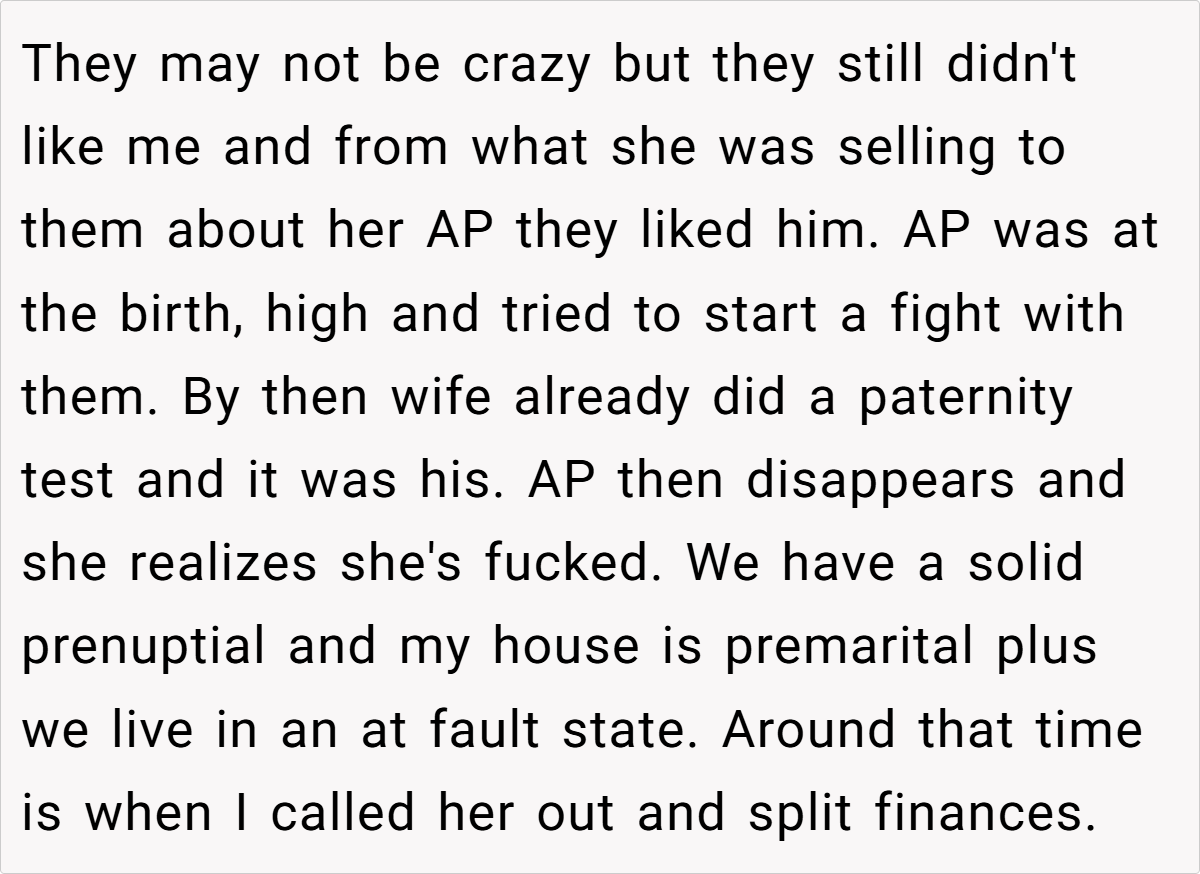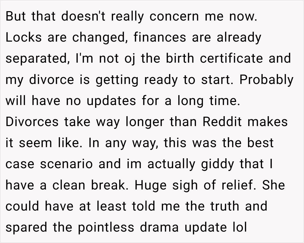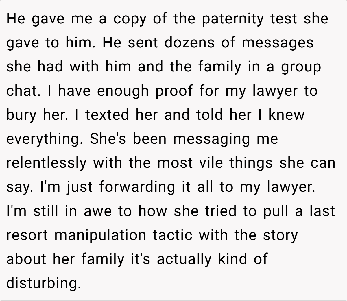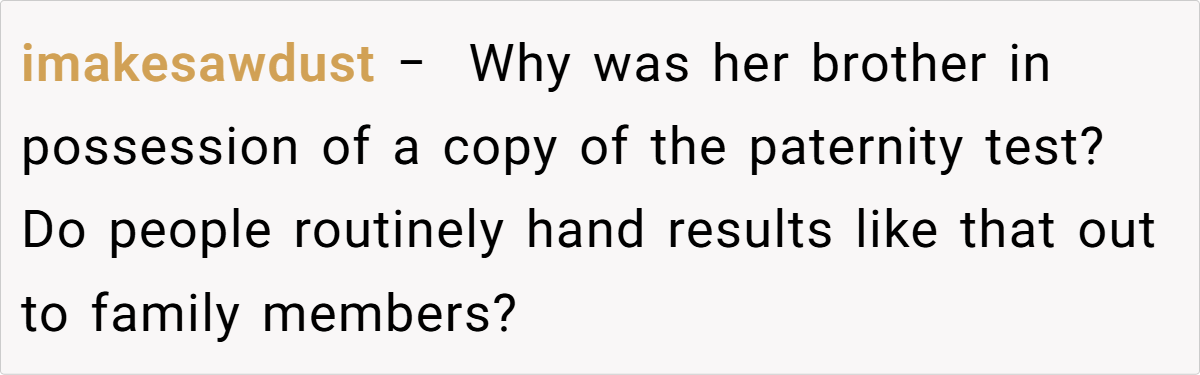 Some users applauded the husband for taking action and cutting ties immediately, while others questioned inconsistencies in the timeline and details. “Why was her brother in possession of the paternity test? Do people routinely hand results like that out to family members?” one user questioned. Another pointed out, “And this all happened in three days, huh?” expressing doubt over how quickly everything unfolded.